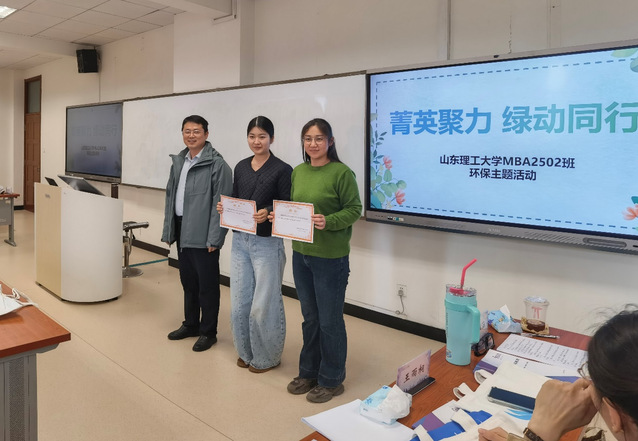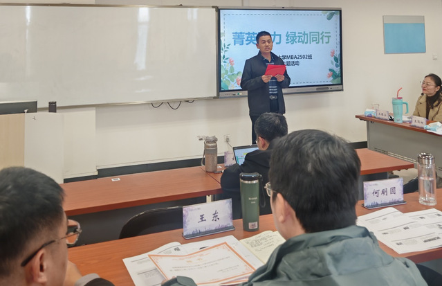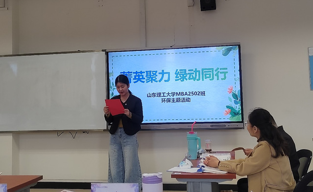 为积极响应绿色发展理念,提升MBA学员的环保意识与社会担当,2025年11月8日,山东理工大学MBA2502班在MBA教育中心303教室开展了“菁英聚力 绿动同行”环保主题活动。活动由班长李春晖主持,全班同学共同参与,通过富有意义的形式,凝聚班级共识,展现了MBA学子践行环保责任、共建绿色校园的积极姿态。
