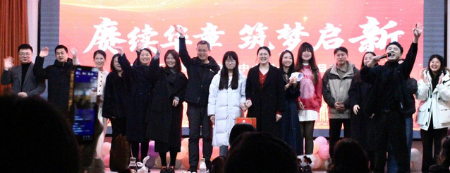 盛典最后,全体工作人员整齐登台,向现场嘉宾鞠躬致谢,至此,2026年山东理工大学MBA教育中心联合会元旦盛典圆满落下帷幕。此次活动不仅为MBA学子搭建了一个展示自我、交流互动的优质平台,更凝聚了校际之间的深厚情谊和师生之间的强大力量。
